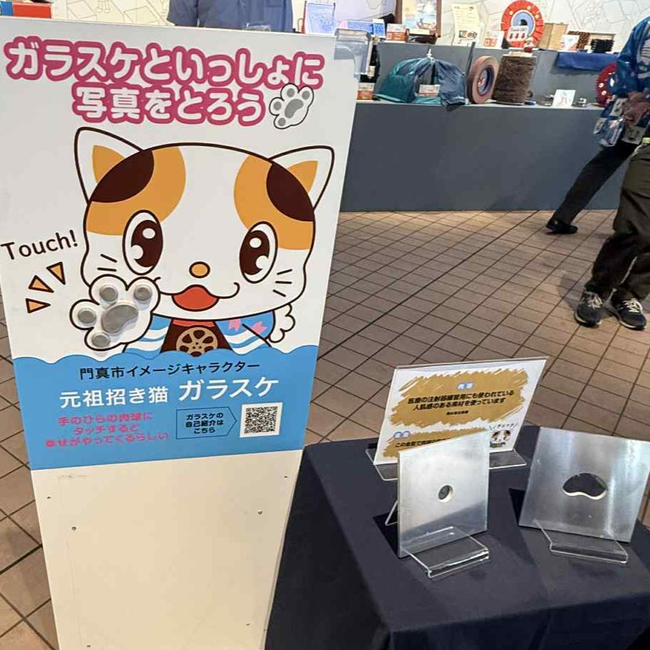 As a KadoMeister in Kadoma City, We exhibited at the Osaka-Kansai Expo2025. Kadoma City's introduction page. Our company created a mold for the paw part of the glass in the corner called "Touching the paw pad of the Kadoma City character Garasuke". This paw pad is made of materials used for medical syringe practice by Toho Co., Ltd., and we have made a mold to shape the paw pad at our company.